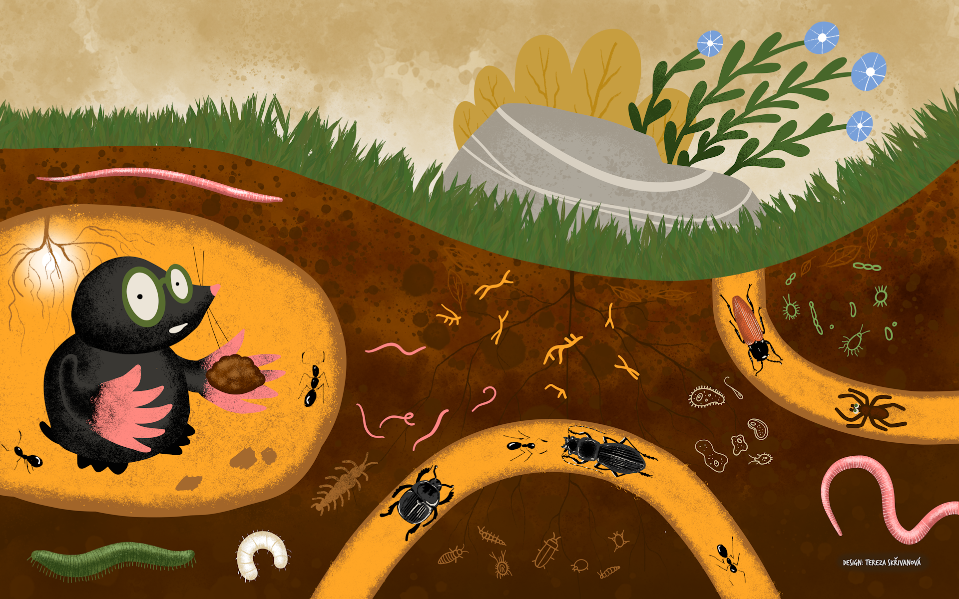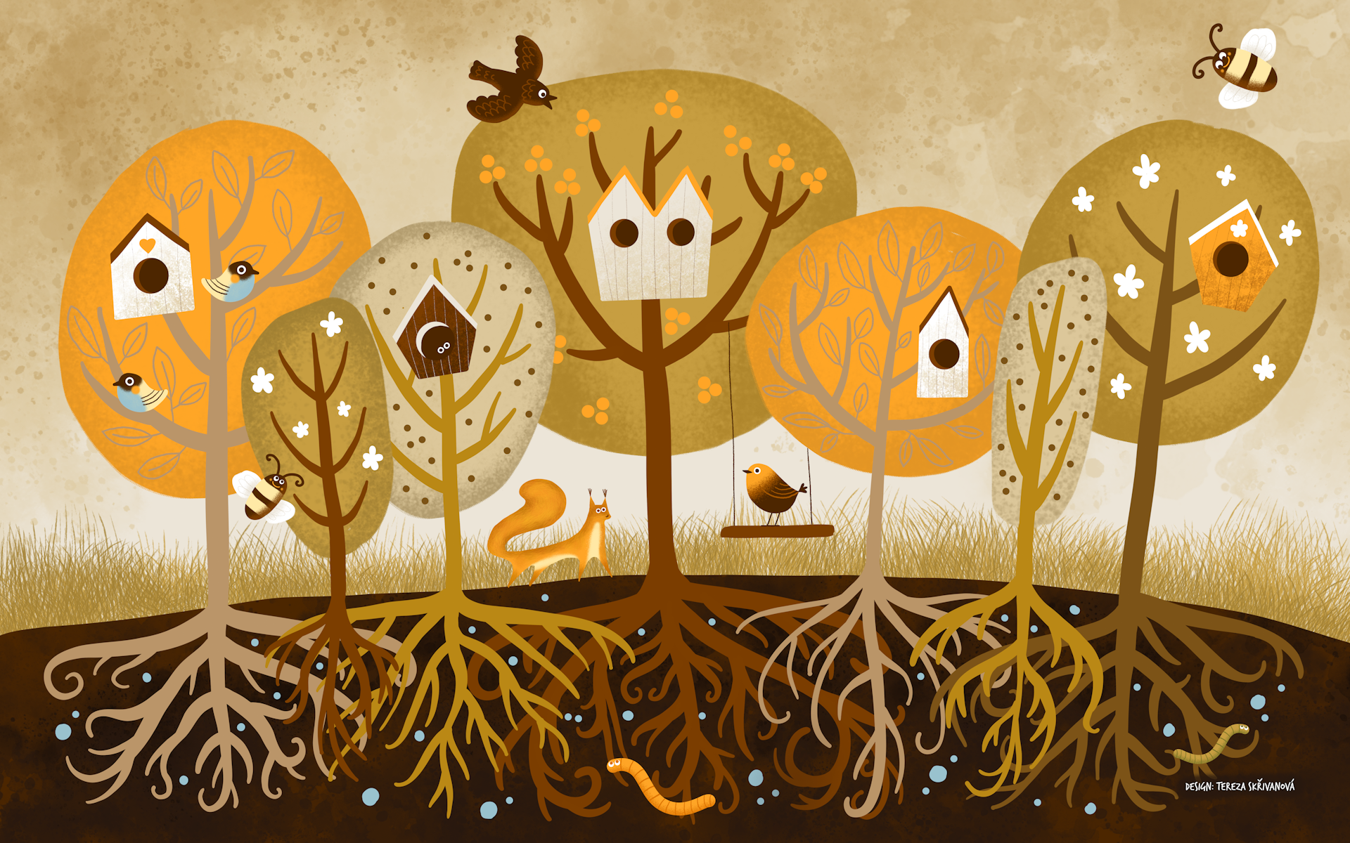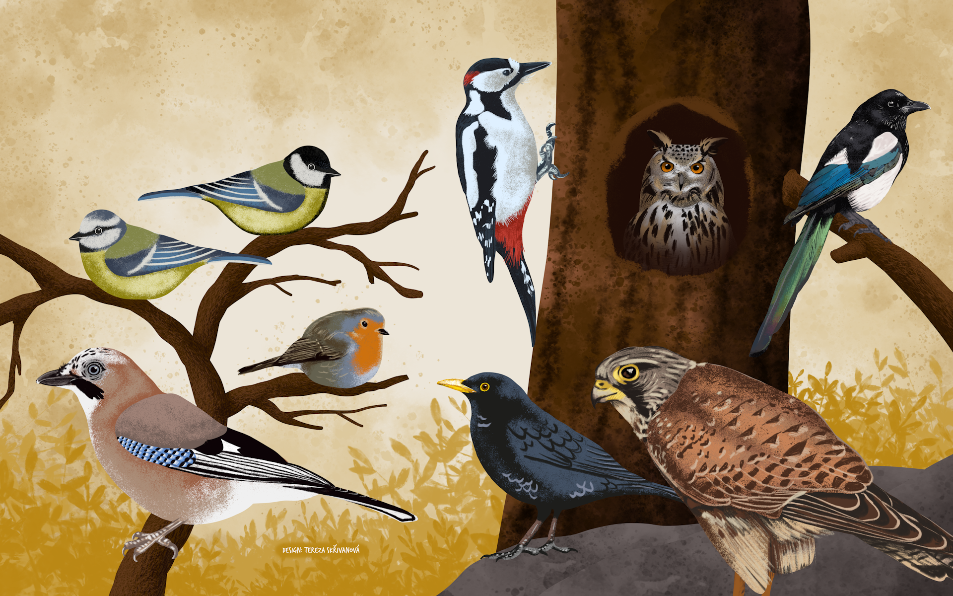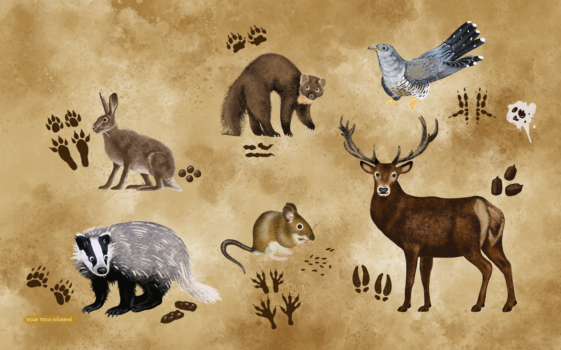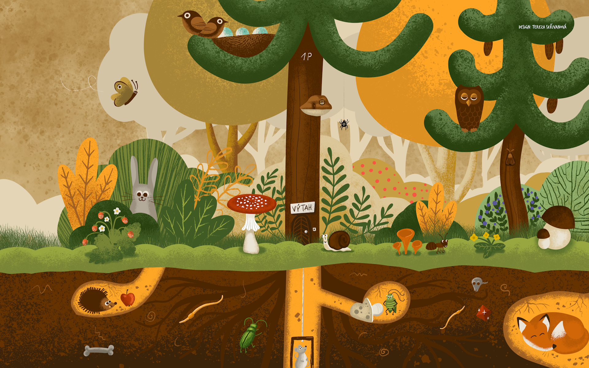 Pro Pohádkový les v Bílině jsem nakreslila sérii cedulí pod projektovým názvem Křížem krážem Pohádkovým lesem. Účel těchto cedulí je zaujmout, pobavit a vzdělat především nejmenší návštěvníky o přírodě kolem a zpestřit tak již krásnou procházku tímto unikátním lesoparkem. Cedule jsou ve finální podobě doplněny krátkými texty a popisky. Velmi ráda tvořím projekty, které obohacují veřejnost a mají smysl.